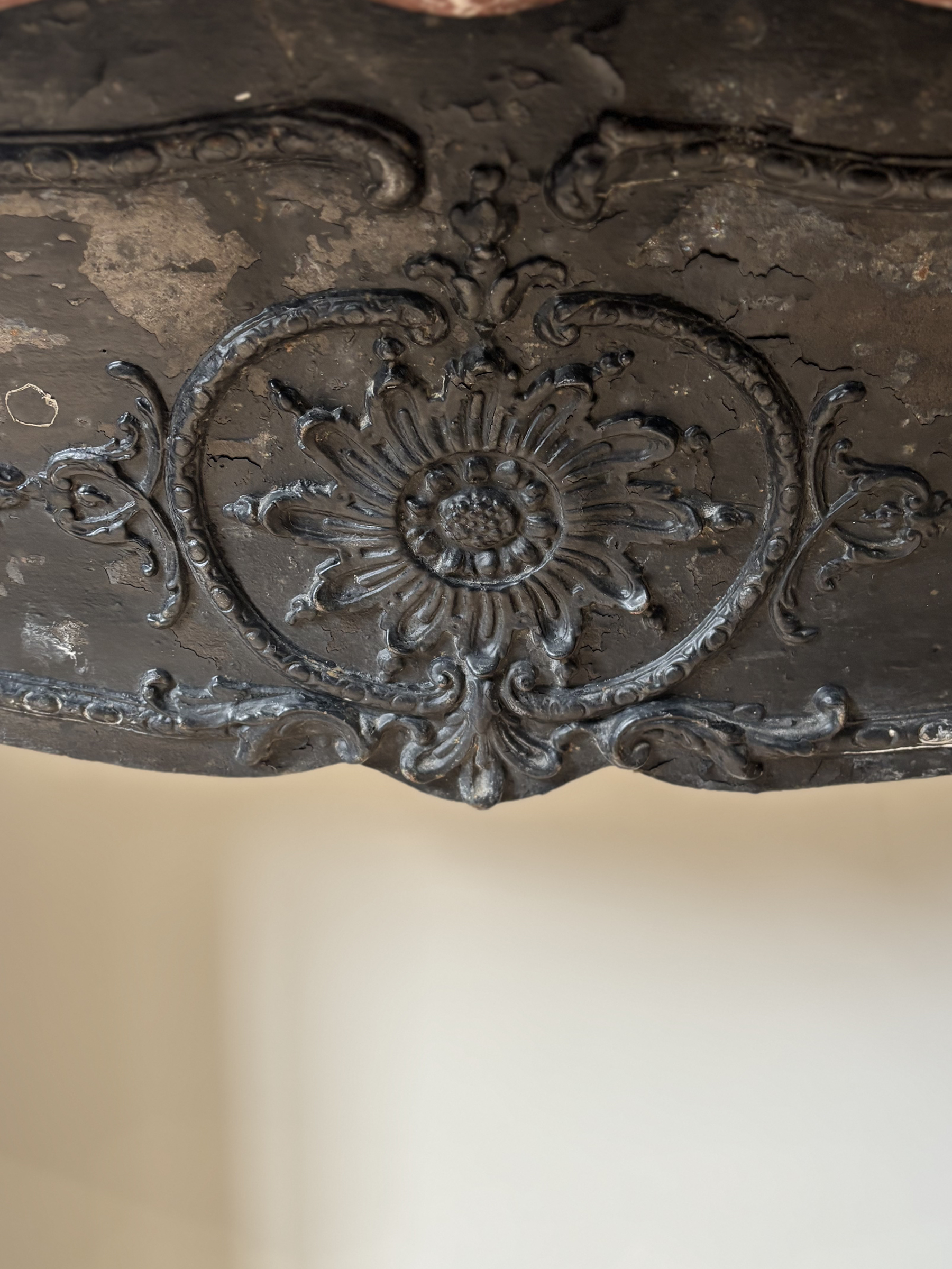 Fireplace In Red Marble Veined With White, With Wrought Iron Plate